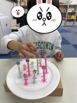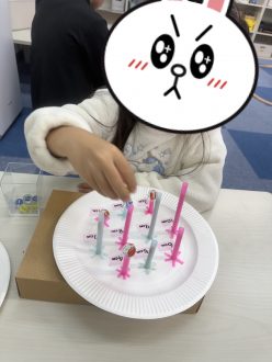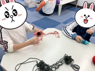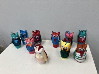 1色で巻き付ける子もいればカラフルに作る子もおり、色とりどりのフクロウが完成しました🦉