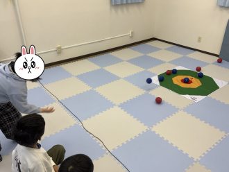 いつものルールと違い、カーリングのようなルールで行いました。