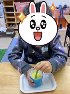 スープはダマにならないように手早く混ぜてもらう事を伝えて行いました。