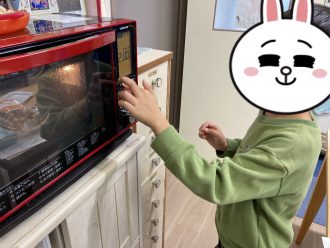 レンジを使ってスープに入れるクルトンも作ってもらいました✨