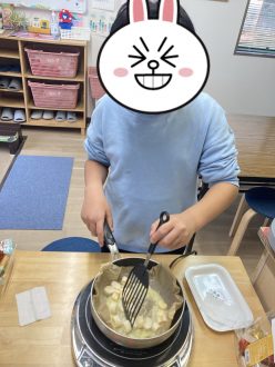 コーンスープは自分たちで作る練習をしました。