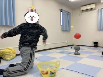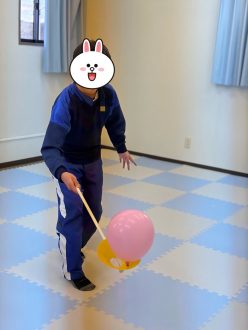 体力づくり(風船的当て、風船キャッチ)