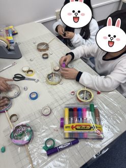 土台に好きな色のテープを貼ったり、面の部分にはイラストを自由に書いてもらいました✨